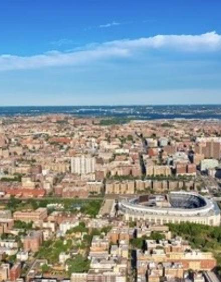 Aerial of the White Plains City skyline in Westchester County and dubbed the “Birthplace of the State of New York”.
