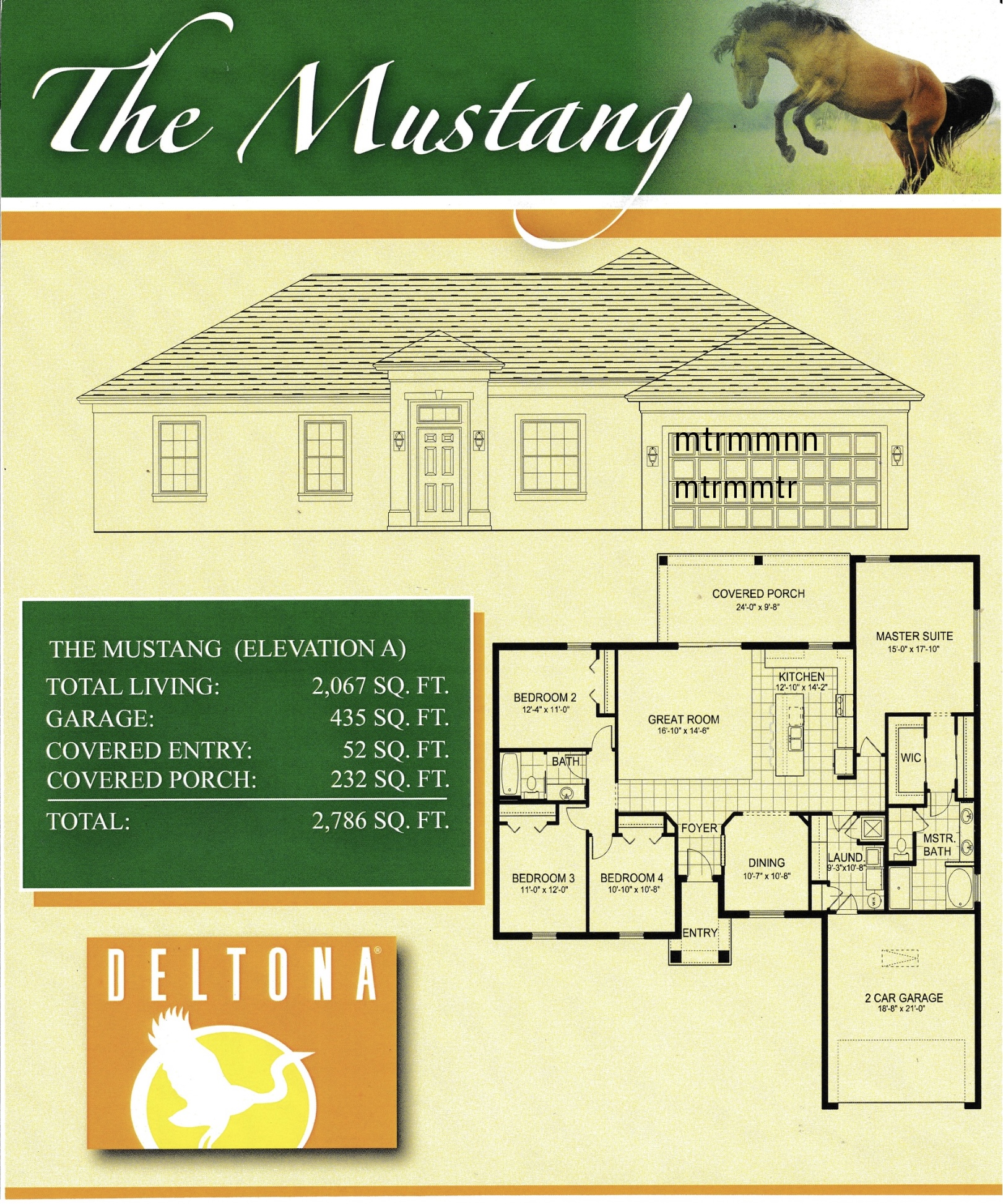 The Mustang model is a single-family new construction that features an open floor plan with a large covered lanai. It has 4 bedroom, 2 baths, 2 car garage. Living area has luxury vinyl plank flooring and carpet in each bedrooms. There is a spacious laundry room with ample countertop and cabinets. The kitchen comes granite countertops, stainless steel stove, microwave, dishwasher and garbage disposal. Bathroom shower and tubs come with tile surrounds. The 2-car garage is equipped with a garage door opener and there is a pull down-stairs to gain access to the attic crawl space. The .29 acre corner lot yard space is fully sodded and landscaped with an irrigation system. The home comes with a 10 year structural warranty.